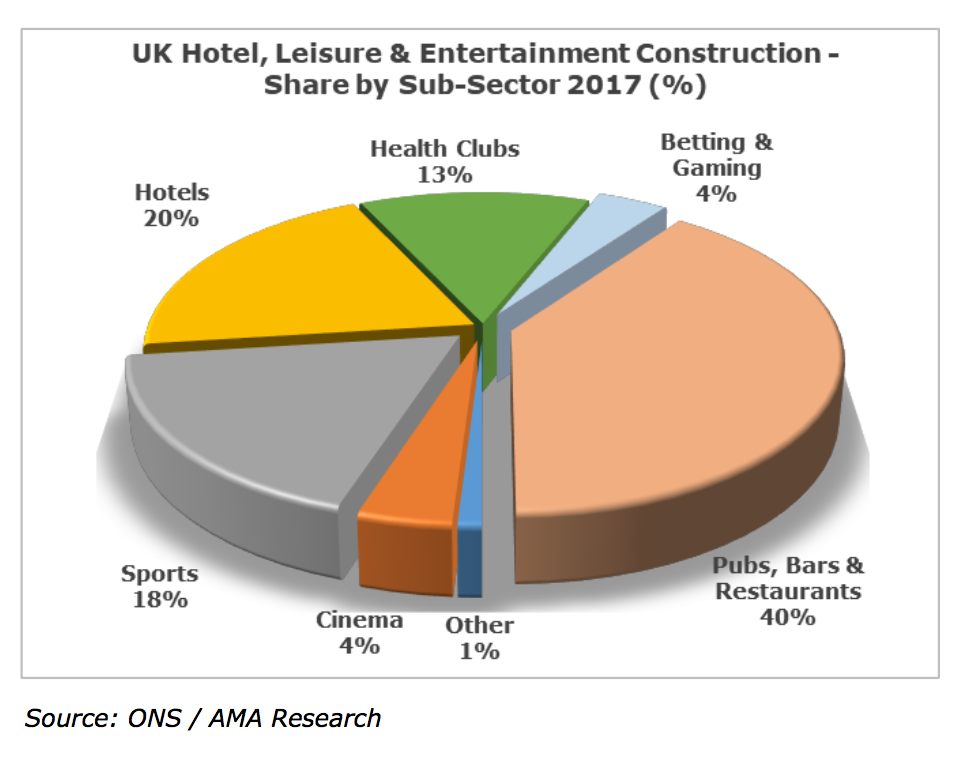 Keith Taylor, director at AMA Research said: “There is no doubt that the hotel, leisure and entertainment construction sectors have performed very well in 2016 and 2017 compared to many other sectors. However, the 33% increase indicated by the construction output figures was partly caused by a revision of both historical and current ONS figures, and for 2018 we are likely to see more realistic figures for output growth.”