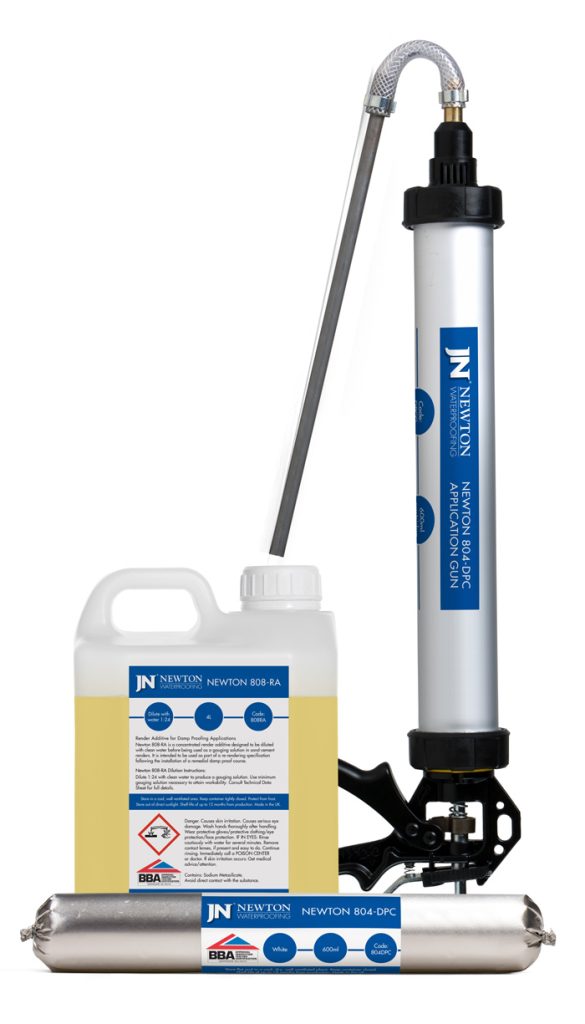 To prevent rising damp in new-builds, the BBA-certified physical damp-proof membrane Newton 809-DPC is installed. However, for remedial rising damp situations this process is ‘too expensive and impractical’, so the company says the best method is to use Newton 804-DPC to convert an existing mortar course into a new DPC. This high-strength damp-proofing cream works by diffusing along the mortar course before curing into a breathable and water-repellent barrier that stops the rising damp.