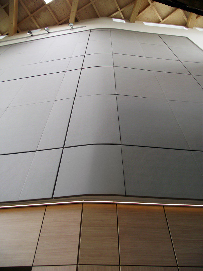 The construction reportedly incorporates micro swirl air cells within the SuperPhon panels which are said to provide ‘superior’ levels of sound absorption. Significantly enhancing sound absorption, particularly at the low end of the frequency spectrum, this is said to reduce the total panel area required to achieve a specified level of reverberation control, as compared with standard absorptive solutions.