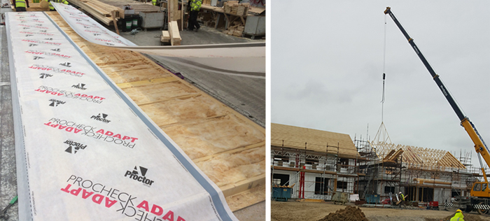 Timber frame specialists, Cygnum Timber Frame, required a high-quality membrane that combines effective airtightness and vapour control. Karl Maloney from Cygnum, said: “Having worked extensively with the A. Proctor Group on previous developments we were looking for a high-performance membrane which would give us the best in terms of airtightness and yet not compromise the vapour control. Procheck Adapt is the ideal choice as it effectively manages both.”