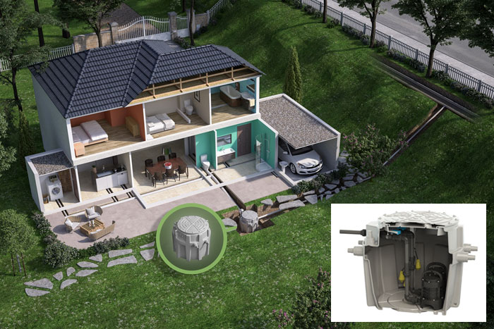 Sanifos can be sited outside a building and below ground where the drainage is too low for a sewer or too low for a surface mounted pumping station. With a high capacity 500 litre tank the Sanifos 500 has multiple connections to take waste from bathrooms, kitchens and utility rooms in industrial or large domestic buildings.