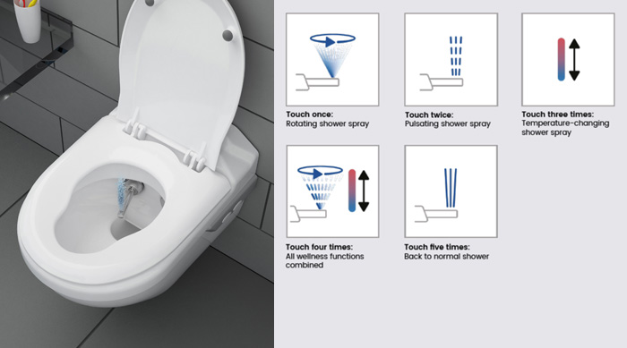 Closomat has, in its latest Asana unit, combined a series of wellness functions, which can be selected depending on each user’s personal requirements. The features are said to simultaneously enhance cleanliness in intimate hygiene and can contribute positively to particular health conditions.
