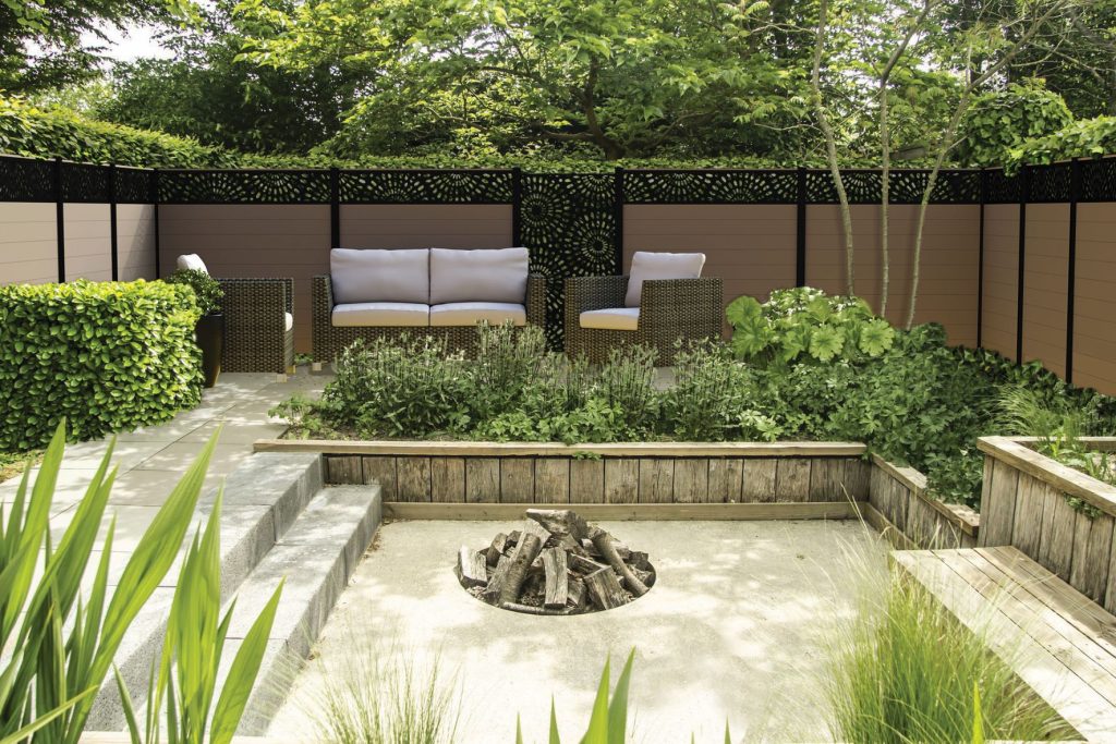 A garden have Marano Integrated aluminium fencing system.