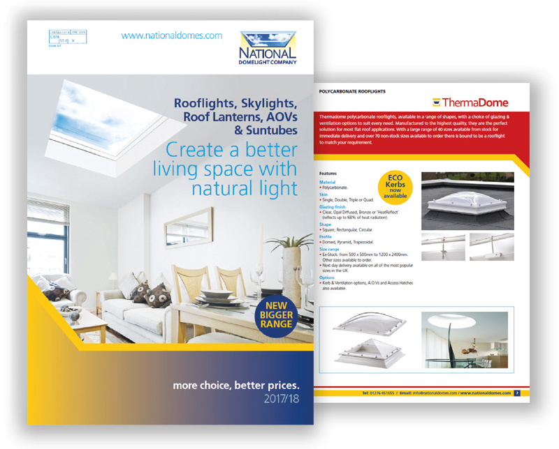 NDC has launched its latest collection of polycarbonate and glass rooflights, showcased in its 2017 Range Brochure, which is available now. New for 2017 is NDC’s Lunaglaze rooflight, a flat glass rooflight in standard specification which is available for next-day delivery. It’s NDC’s first to offer both PVC and aluminium frame options. Additionally, the AstroGlaze range has been extended to offer larger one-piece flat glass rooflights. The popular Mardome range in polycarbonate and glass has been expanded, as has the classic Coxdome collection. The brochure’s ‘Site Specification & Measuring Guide’ and rooflight-type infographic ensures the best product choice for the project, all in a handy A5-sized brochure that’s perfect for the tool bag.