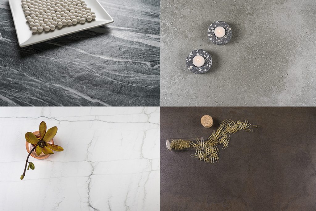 Four patterns have been added in 20mm to the 2019 catalogue: pietra di piombo silk, estatuario 01 polished, calacatta polished and basalt grey satin. Aspen grey silk, concrete taupe silk, blanco carrara 02 silk and calatorao silk are now available in 3mm.