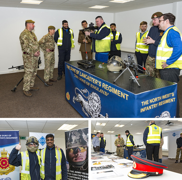 Systems supplier Veka hosted representatives from the Duke of Lancaster’s Regiment at the company’s Burnley headquarters to give staff chance to find out more about joining the Army Reserve.