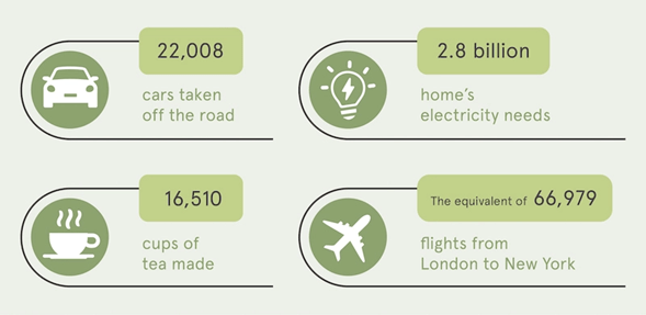 Each uPVC window has a global warming potential of +100kgCO2e, so with each purchase of a Bereco window you save 252kgCO2e each time. The overall saving from Bereco between 2003 and February 2022 was equivalent to 22,008 cars being taken off the road, 66,979 flights from London to New York, or 16,510 cups of tea being made. Since then, this number has upped to a total saving of 72 million kgCO2e, with over 283,000 timber windows and doors having been supplied.
